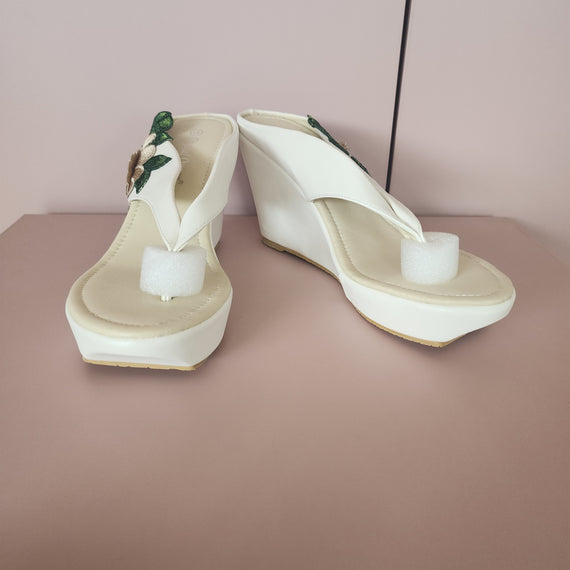 Toe Floral Sapo Wedges [WHITE/GREEN]