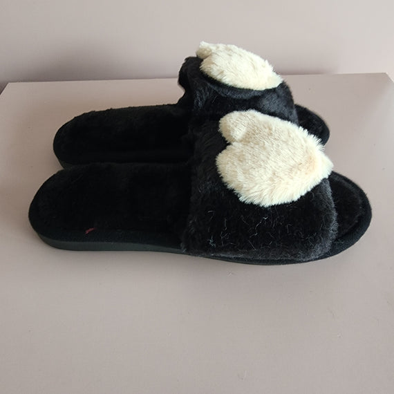 Fluffy Heart Slippers [ROSE/BLACK]
