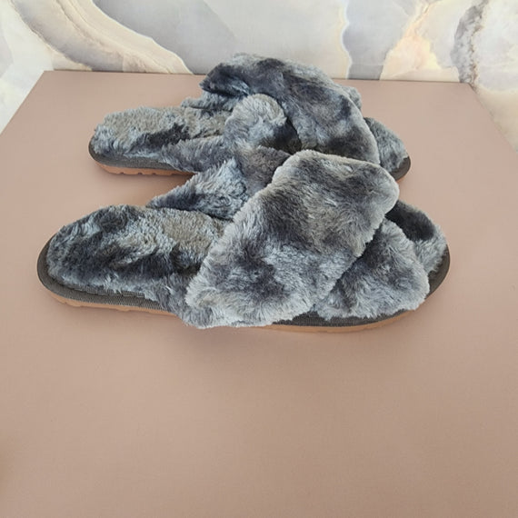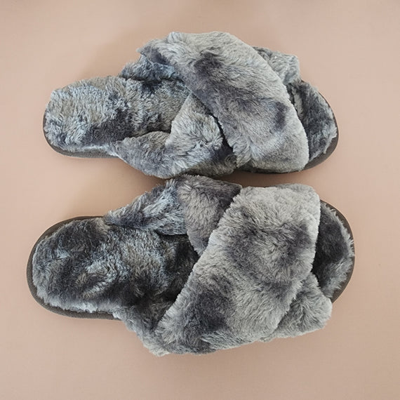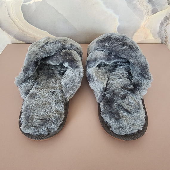 Fur Cross Slippers [Gray]
