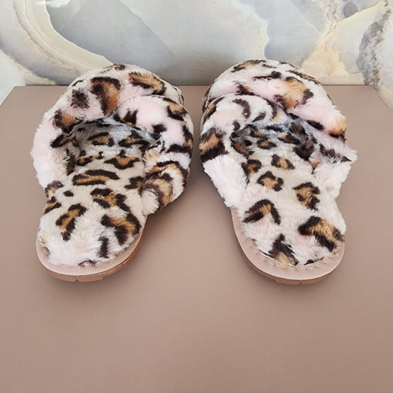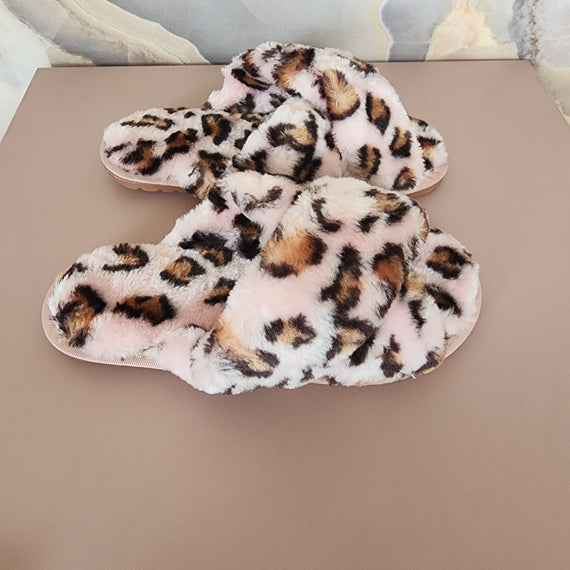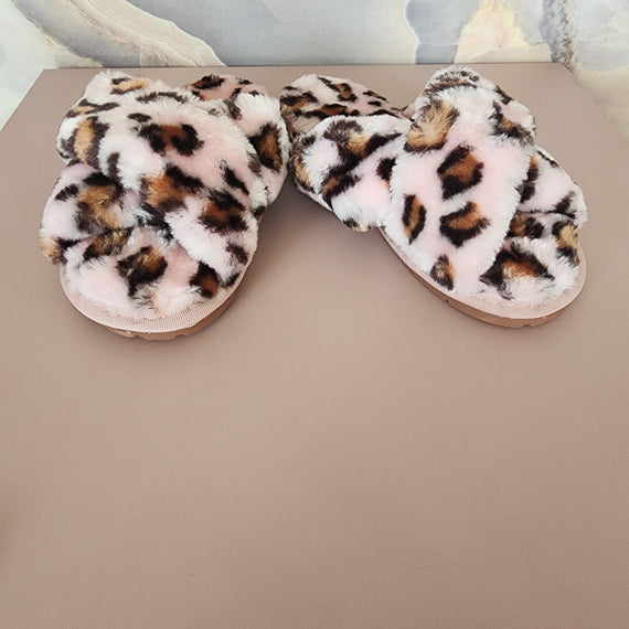 Fur Cross Slippers [Pink/Leopard]