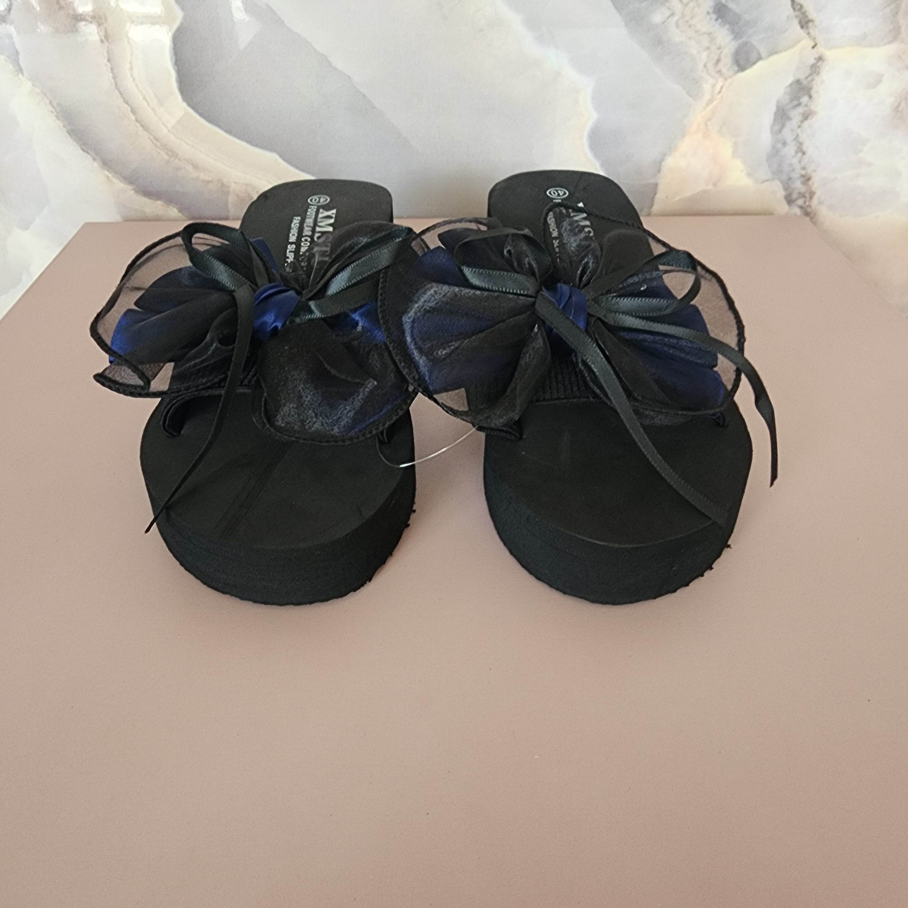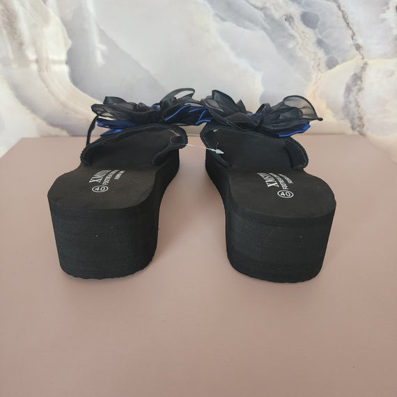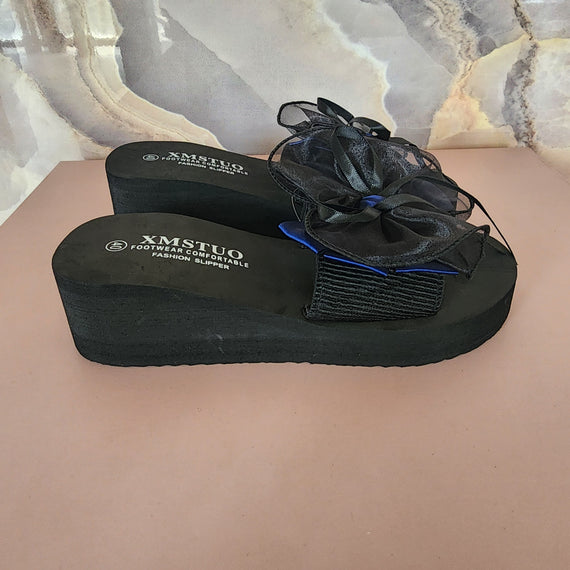 Max Ribbons High Slippers [Black/Blue Ribbon]