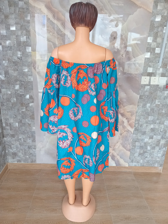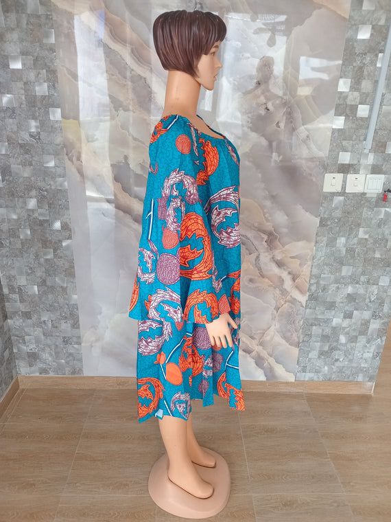 African Print Dress [Turquoise/Orange]